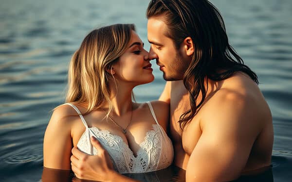 Seine Blicke wurden immer gieriger und er wich meinen auch nicht mehr aus, als ich ihn direkt anschaute. Ein Grinsen lag uns beiden auf dem Gesicht und meine Fantasie begann mit mir durchzugehen. Zu gern hätte ich jetzt die kräftigen Hände des jungen Kerls auf meiner Haut gespürt. Er würde meinen großen und dennoch festen Busen massieren, mit seiner Zunge an meinen Nippeln spielen, bis sie hart sind und anschließend an ihnen saugen. Meine Hand würde zielstrebig an ihm herunterwandern, seinen Schritt finden und seinem Steifen eine erst sanfte, dann immer festere Massage verpassen. Lange würde er es vor Geilheit nicht aushalten und mit seinem Kopf zwischen meinen Beinen versinken, um meine Liebesperle zu lecken und von meinem geilen Saft zu kosten. Wir würden beide immer geiler werden, dann würde er meine Hüften ergreifen und mich herumdrehen. Mit hochgerecktem Po würde ich da knien und nur darauf warten, ihn zu spüren. Seine dicke spitze drückt dann sanft an meinem nassen Loch, um Sekunden später ganz darin zu versinken. Im gleichmäßigen Rhythmus würde ich ihn dann immer tiefer spüren, mich ihm immer mehr entgegenstrecken und dabei selbst noch meine kleine Erbse massieren. So jung und ungestüm wie er noch ist, würde es natürlich nicht lange dauern, bis er seinem Höhepunkt entgegensteuert. Nachdem er seinen Saft in mich verspritzt hätte, würden wir beide auf die Decke sinken und entspannt den Nachmittag genießen. Die Träumereien machten mich noch heißer und es war wirklich an der Zeit, eine Abkühlung zu bekommen. Schnell stand ich auf und lief in den See. Ich schwamm zu einer kleinen Bucht, die Schatten und Ruhe spendete, als ich ihn hinter mir entdeckte. Er war mir einfach nachgekommen und wollte nun das wahr machen, was bisher nur in meiner Fantasie geschah!